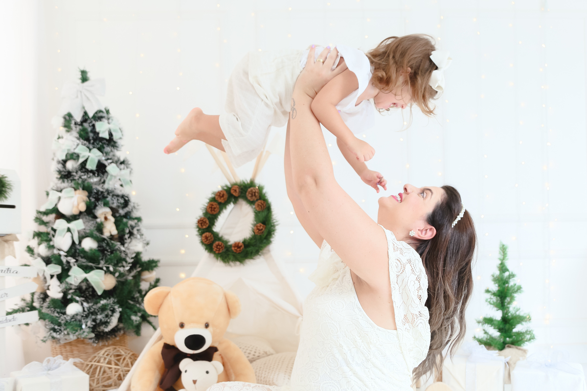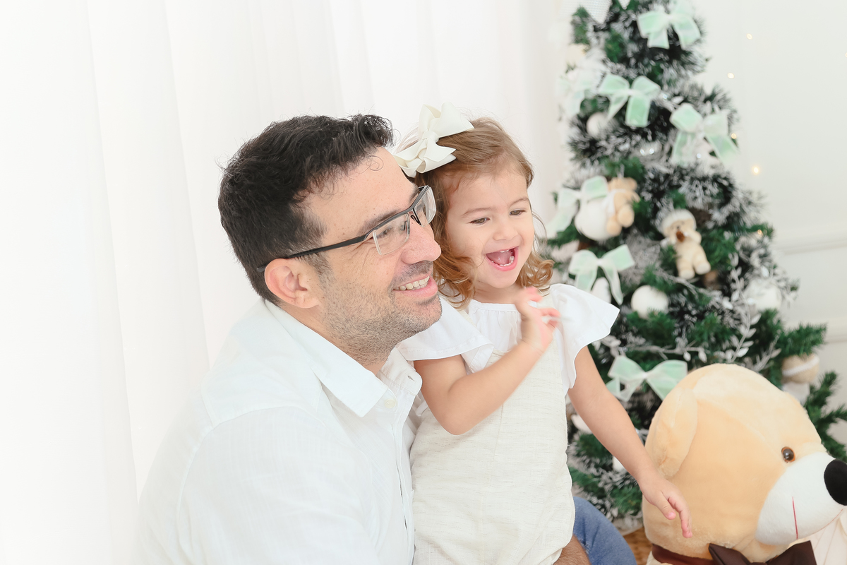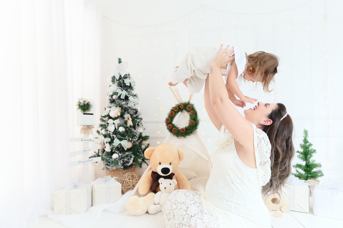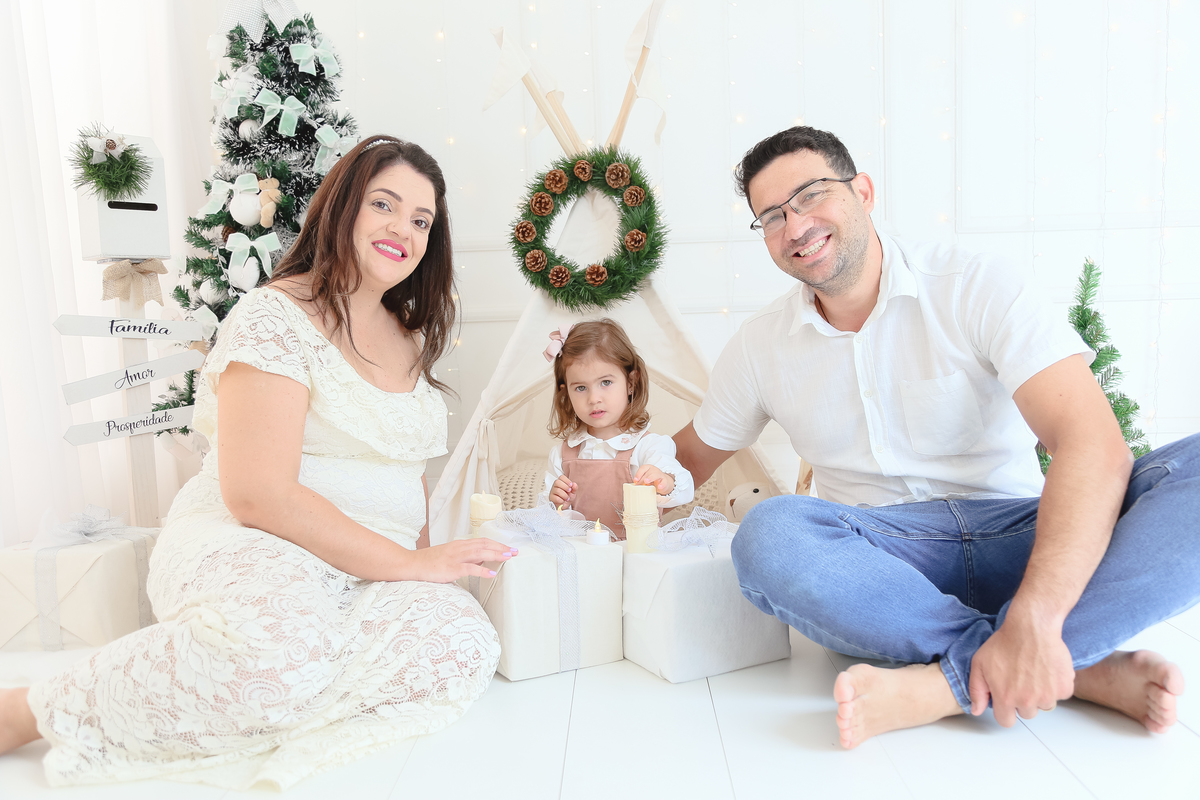 A pequena Maria Clara adorou se divertir com o papai e a mamãe no ensaio de natal em família.