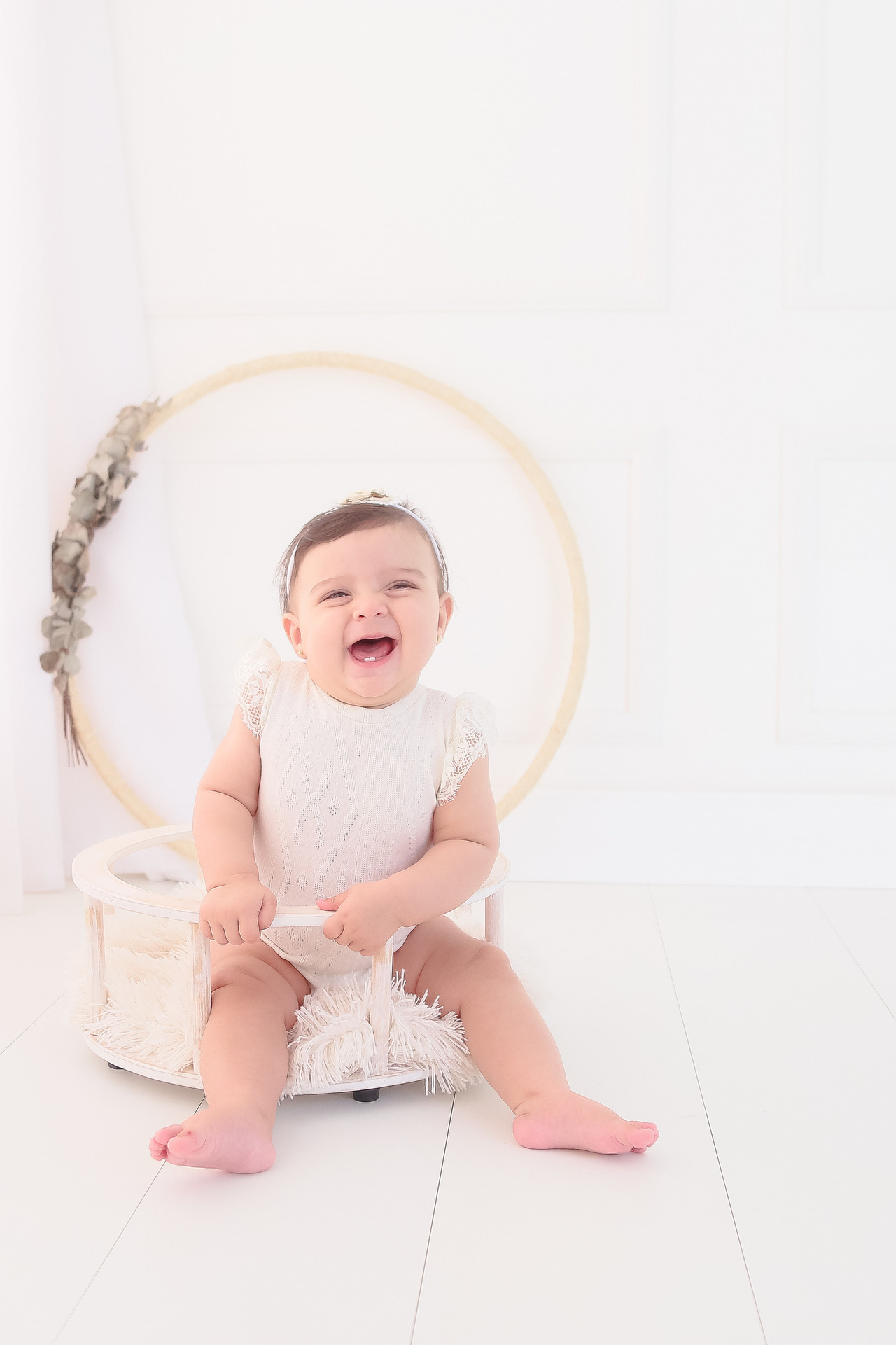 4-) Roupas coordenadas: lembrar do seu filho com uma roupinha bonita é super legal, mas cuidado com exageros. Optar por cores neutras e tecidos suaves pode realçar a beleza do seu filho sem criar distrações visuais, além de também contribuem para a harmonia das imagens.